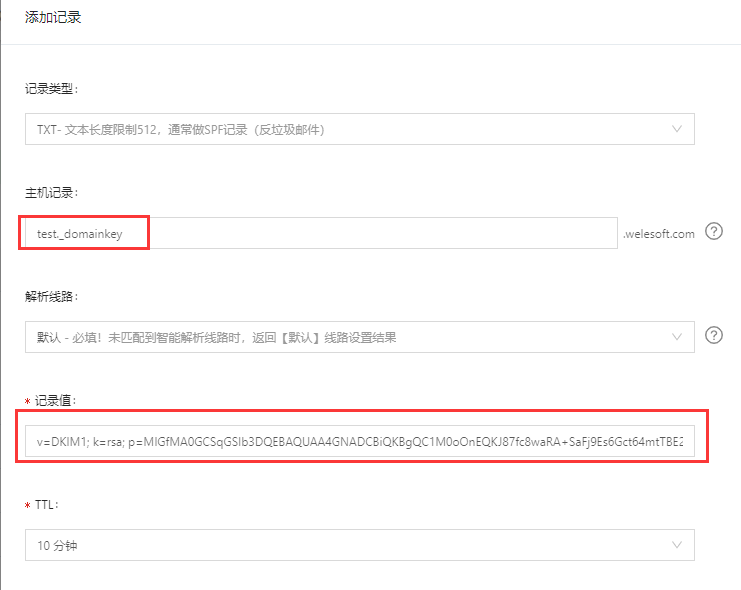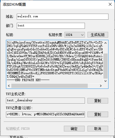 伯勒邮件群发机 里 DKIM 的设置方法( 以域名 welesoft.com 为例 )