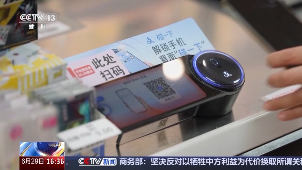 信息通信行业反诈中心专家 李臻:在新型的诈骗场景中,诈骗分子会诱导被害人把他的银行卡,贴近自己具有NFC支付功能的手机上,在这个过程中,被害人银行卡的交易信息,(通过木马软件)会被实时远程传送到诈骗分子的手机上,在这个时候,把手机贴近POS机,就远程完成了这次交易支付,那么被害人手机的钱,就被犯罪分子盗刷了。