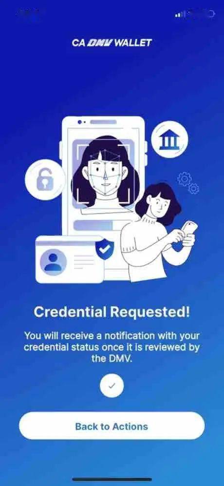 在短暂处理数据后,会显示出“已要求凭证”的字样。一旦车管所审核后,您将收到有关你的凭证状态通知。