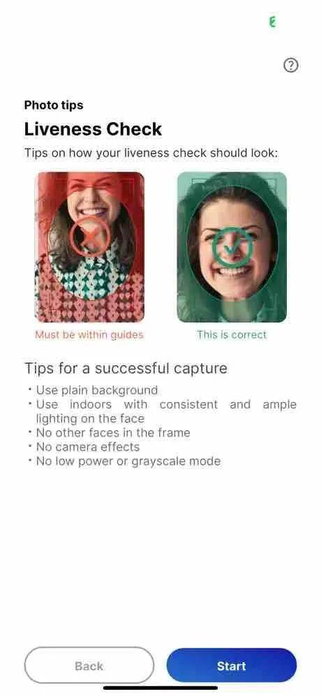 活跃性脸部识别:右图为正确示范,左图为错误示范。